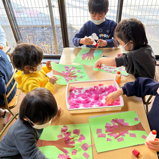 プレースクールは、気分だけでも春??!!!という事で素敵な桃の木を作りました。