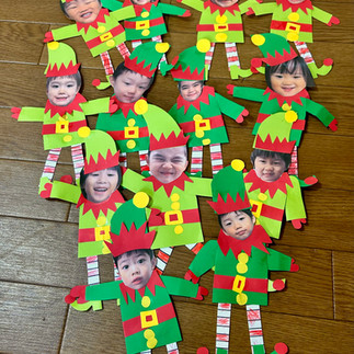お馴染みプレースクールも、サンタさんを作りました。紙をブリブリ破ってお髭にしました!!