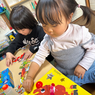 お馴染みプレースクールは季節がゆったり進行中で、まだ少し秋の気配。