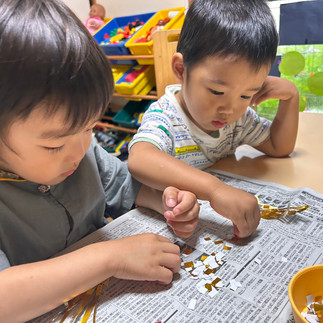 クラフト中には「Twinkle Twinkle Little Star〜♪」と、英語でキラキラ星を歌いながら作っているお友達もいましたよ。