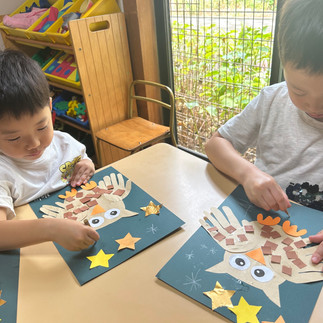 プレースクールでは手形をぺったんして、フクロウを作りました🦉